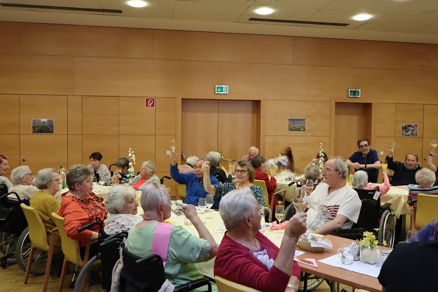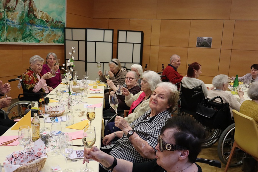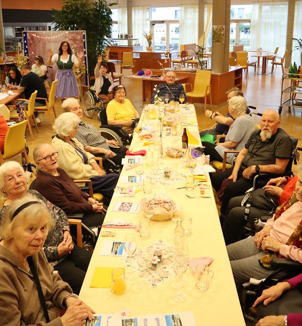 Am Donnerstag Abend haben wir uns ein Stück Wachau ins Haus geholt! Die Marillenblüte mag vielleicht schon vorbei sein. Wir haben sie mit unserem Fest noch ein wenig verlängert. Im wunderschön geschmückten Veranstaltungsaal haben wir die Marillenblütenkönigin unter Fanfarenbegleitung Willkommen geheißen, zum Donauwalzer alle gemeinsam einen Sitztanz getanzt und – als Höhepunkt – haben wir das „Mariandl“ Lied gesungen. Kulinarisch haben wir unsere Gäste mit Marillenknödel verwöhnt. Dazu gab es einen würzigen Grünen Veltliner oder Marillensaft. Bei einem Quiz konnten unsere Bewohner*innen ihr Wissen rund um die Wachau und den Marillenanbau unter Beweis stellen. Bei ausgelassener Stimmung wurde noch fleißig weiter gefeiert. Und zum Abschluß gab es auch noch ein Stamperl Marillenlikör und ein Foto zur Erinnerung an einen wirklich lustigen Abend!